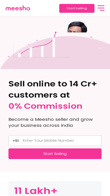 83%Sell your products online on Meesho at 0% commission. Register as a Meesho seller and start selling online to crores of customers across India. Grow your business 10x with India’s leading e-commerce website!