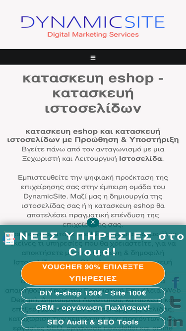 93%Κατασκευή Ιστοσελίδων και eShop που ενισχύουν την online παρουσία σας. 20 Χρόνια Εμπειρίας. Λύσεις για κάθε προϋπολογισμό.