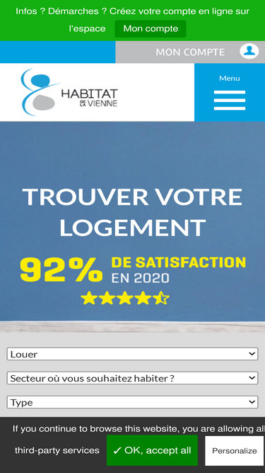 82%Avec plus de 12 000 logements sur 202 communes, Habitat de la Vienne vous accompagne, de la recherche de logement à l'accès à la propriété.