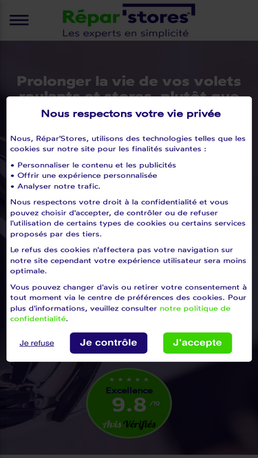 88%Repar´Stores : 300 experts spécialisés dans la réparation, le dépannage et la motorisation de volet roulant et stores en moins de 48h à partir de 70€