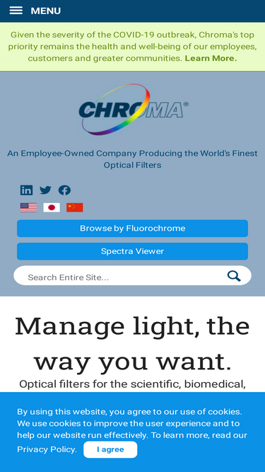 100%Omega Optical designs, manufactures, and coats critical optical elements that guide light between source and sensor. Our Optical Filters, Diffraction Gratings, Infrared optics, and Custom Coating products all help to make the world healthier, safer, and more productive.