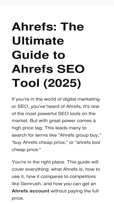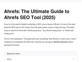 100%The ultimate guide to Ahrefs. Learn what it is, how to use it, and how to get an Ahrefs account at a cheap price through a group buy.