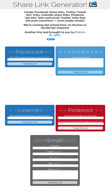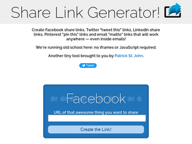 86%Tired of hand-coding share links? Share Link Generator creates custom, email-friendly share links for Facebook, Twitter/X, LinkedIn, Bluesky, Telegram, Pinterest, and Email.