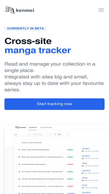 78%Cross-site manga tracker, that lets you read and track manga across websites.