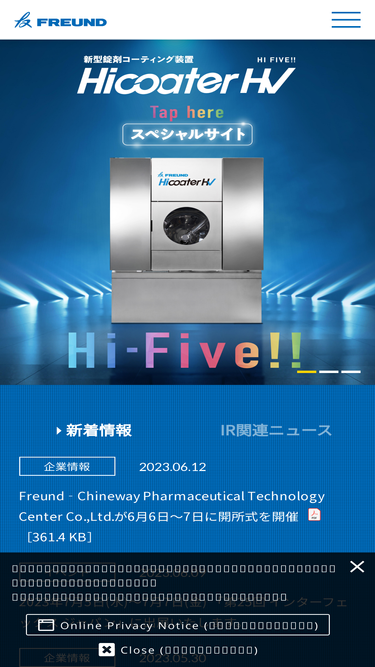 74%「創造力で未来を拓く」フロイント産業のホームページです。造粒・コーティングなどの装置と添加剤、品質保持剤などの開発、製造、販売を行っています。会社情報:会社案内:事業所・グルーープ会社をご紹介します。