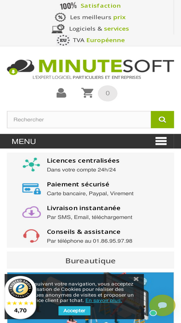 86%vos logiciels en licence légale de bureautique, antivirus et de sécurité, comptabilité et gestion, graphisme et multimédia pour entreprises et particuliers
