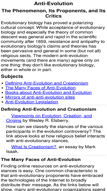 90%a critical exmaination of antievolution, its roots in creationism, and its arguments against evolution.