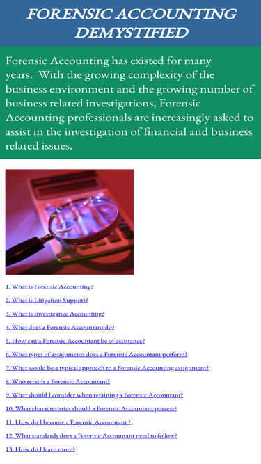 60%forensic accounting demystified explores the exciting field of forensic accounting including investigative accounting and litigation support.