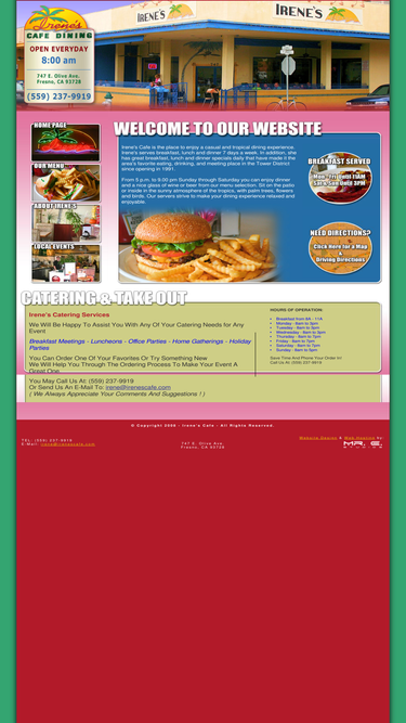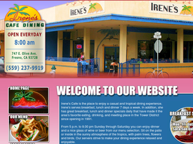 100%irene's cafe offers high quality restaurant dining in a tropical atmosphere. located in the tower district of fresno california, irene's cafe is open for breakfast, lunch & dinner.