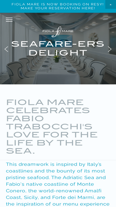 98%Fiola Mare is an award-winning Italian Seafood Restaurant located at the iconic Georgetown Waterfront in Washington DC. Our Sunday Catch Menu is a special 4 Course feast featuring the freshest and finest seafood catches perfectly prepared. Pair it with our exceptional Wine List and hand-crafted Cock
