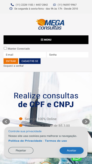 89%No Consulte Fácil, você realiza consultas PF e PJ e conta com um sistema 100% online e seguro sem mensalidade.