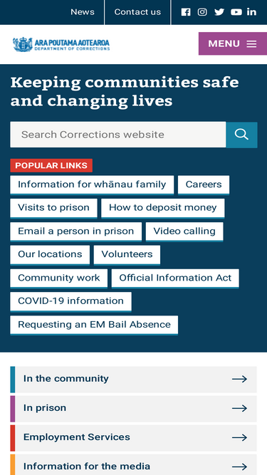 The New Zealand Department of Corrections works to make New Zealand a better, safer place by protecting the public from those who can cause harm; and reducing re-offending.