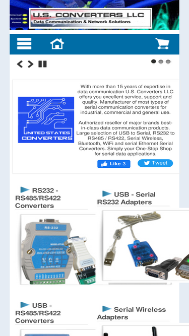 100%US Converters are experts in serial data communication and supply USB Serial Adapters, RS232 to RS485 and RS422 Converters including Serial Wireless adapters, Bluetooth and serial Ethernet Products.