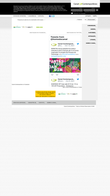 baseado em novos conceitos midi�ticos como comunidade virtual (h. rheingold), m�dia radical (j. d. h. downing), m�dia t�tica (d. garcia/g. lovink), entre outros, o canal contempor�neo desenvolve uma comunidade digital focada na arte contempor�nea brasileira para promover sociabilidade, informa��o, participa��o pol�tica e senso de pertencimento, com o objetivo de provocar transforma��es no seu contexto. com a participa��o de integrantes diversos, informa-se e discute-se arte, circuitos, sistemas de arte e pol�ticas p�blicas.