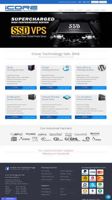 100%iCore is a Malaysia hosting provider since 2004. We provides domain, LiteSpeed hosting, email, dedicated server and etc.