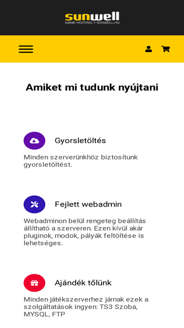 90%Játékszerver, Vps, Webtárhely bérlés @ sunwell.hu - MagyarHosting - Cod, Cs1.6, MC, SAMP, MTA, Ts3, VPS, Webtárhely, Domain, EDSMS