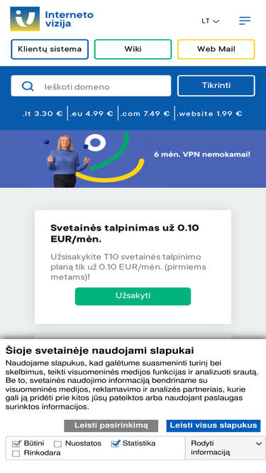 100%Interneto vizija – svetainių talpinimas, domenų registravimas, SSL sertifikatai ir VPS serveriai Lietuvoje. Greitas, patikimas ir saugus hostingas su profesionaliu aptarnavimu.