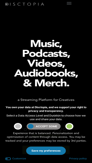 87%Disctopia is a fast growing Indie Music Streaming and Podcast Hosting Service. We have a plan for every creative, and their fans.