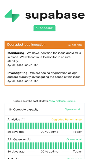 88%welcome to supabase's home for real-time and historical data on system performance.