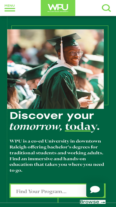 80%Unlock your potential with William Peace University's innovative undergraduate programs, vibrant campus life, and career-focused education.