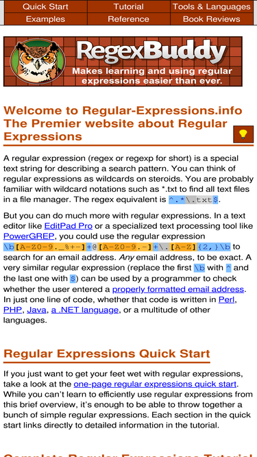 89%at regular-expressions.info you will find a wide range of in-depth information about a powerful search pattern language called regular expressions.