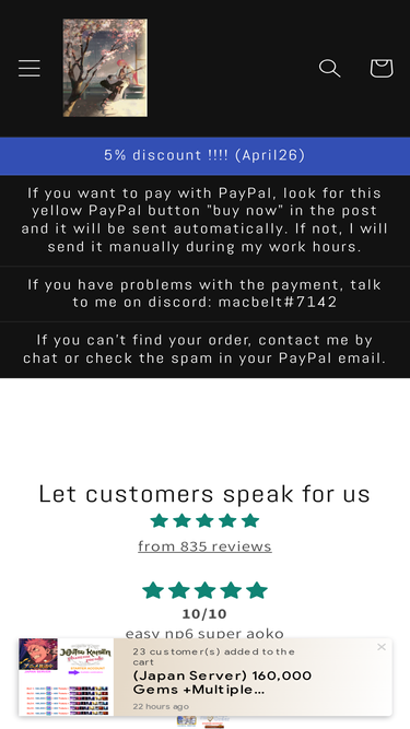 78%Account Catalog Click Here * Do not place any order! $1 is not the final price, only will ease the transaction once you have contacted us.JACKPOT Starter Accounts Click Here How to get our service? Pick any character that you wanted and then click search (If nothing come out, please come back later) Take a "screenshot" and then contact us through Discord https://discord.gg/DSP6Yfk or social media live chat for price quotation. Client: Global & JPOS: Android & IOSGB Download Link: Google | IOS