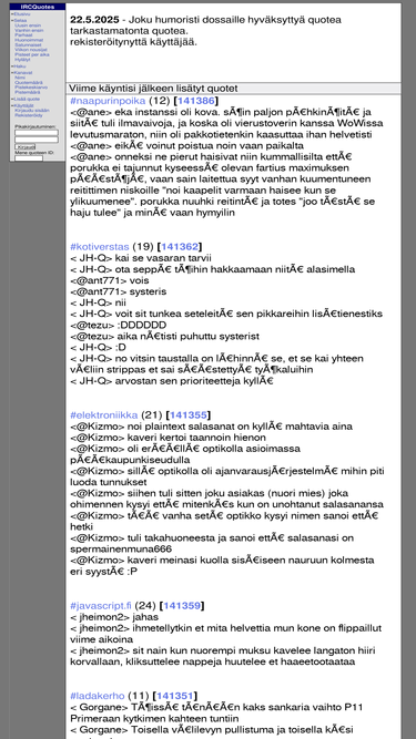 84%ircquotes tarjoaa tuhansia humoristisia lainauksia irc-keskusteluista suomeksi.