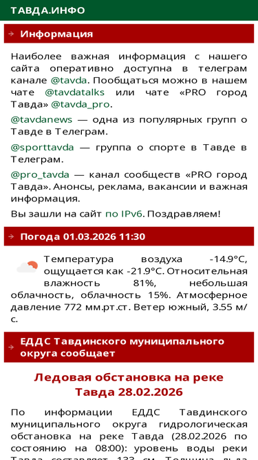 88%на сайте вы найдёте сведения о городе и районе, ленту новостей, ссылки на видеоматериалы о тавде и многое другое. портал тавда.инфо — один из первых сайтов о тавде и тавдинском районе.