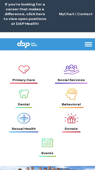 95%Since 1984, the mission of DAP Health has been to enhance and promote the health and well-being of our community by providing comprehensive, culturally competent, quality primary and preventative health care services including; primary medical care, HIV and Hepatitis specialty care, dentistry, behavioral health and social services all-under-one-roof.