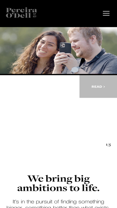100%Pereira O'Dell is a full-service advertising agency with offices in San Francisco and New York. Founded in 2008 by two leaders in the then-burgeoning digital marketing space, Pereira O'Dell has become widely recognized for its groundbreaking branded content work and unique approach to its clients' business challenges. The agency has earned accolades including multiple years on AdAge and Creativity's Agency A-List, over two dozen Cannes Lions including three Grand Prix, and the first Emmy ever awarded to an advertisement competing against regular entertainment programming.