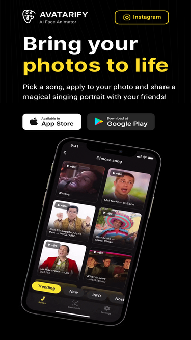 100%Pick a song, apply to your photo and share magical singing portrait with your friends!