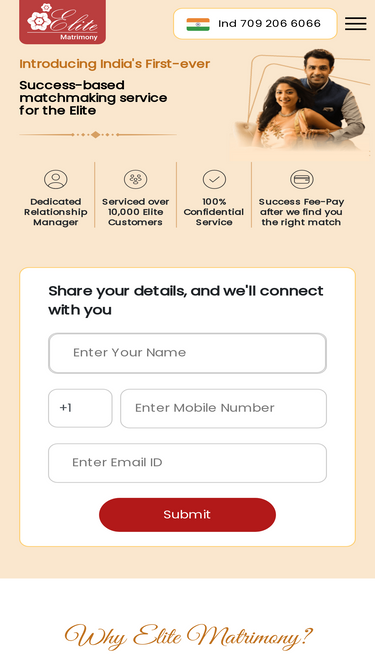 86%Elite Matrimony, with 17+ years of expertise in high-end matchmaking, offers exclusive profiles of affluent Indians & NRIs seeking brides & grooms for marriage.