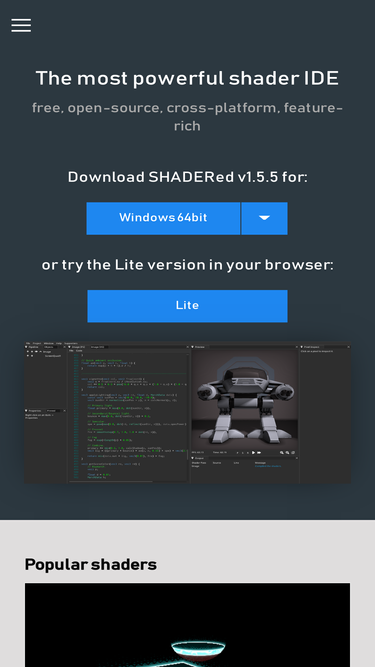 100%shadered is the most powerful shader ide/editor. it is open-source, cross-platform & has features such as the shader debugger, compute shaders, plugin api, etc...