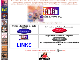 100%Tandem Music Group Corp.'s Web site permits individuals to sample and buy CDs and tapes from our catalogue online. Tandem provides international record management services for quality independent recording artists and labels. We offer to distributors and licensees many fine music recordings and individual tracks for licensing in, or export to, territories throughout the world. The labels represented include Artisan, Highland, Indian Sounds, Melodeon, Midsummer, Mythic Salmon, PacificLine and Sound Advice. Our current roster includes World, Latin, New Age/Contemporary Instrumental, Celtic, Nature Sounds With Music, instrumental covers of Popular hits and Christmas music. Artists andindependent labels are always welcome to contact us to learn more about what we will do to get their music placed in foreign territories.