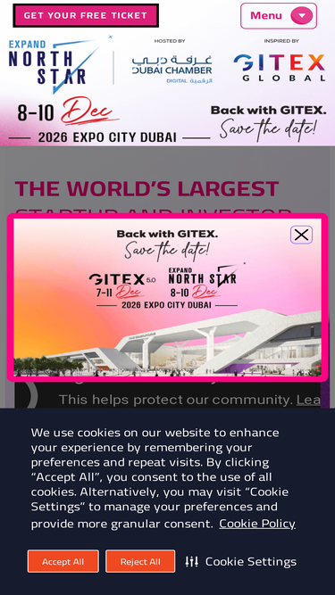 80%Expand North Star 2026 is where ambition meets opportunity. The world’s largest startup and investor event returns alongside GITEX Global at the Dubai Exhibition Centre, Expo City Dubai — creating one mega ecosystem of ideas, innovation, and investment.