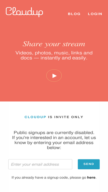 85%share streams of anything – video, photos, music, links and files – instantly and easily with cloudup.