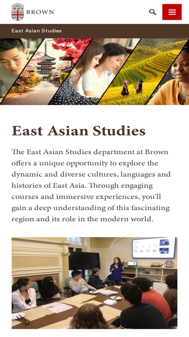 100%The East Asian Studies department at Brown offers a unique opportunity to explore the dynamic and diverse cultures, languages and histories of East Asia. Through engaging courses and immersive experiences, you'll gain a deep understanding of this fascinating region and its role in the modern world.