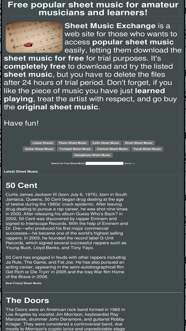 97%sheet music exchange is a site dedicated to all music lovers around the world, giving them the opportunity to try before buying the popular sheet music files.