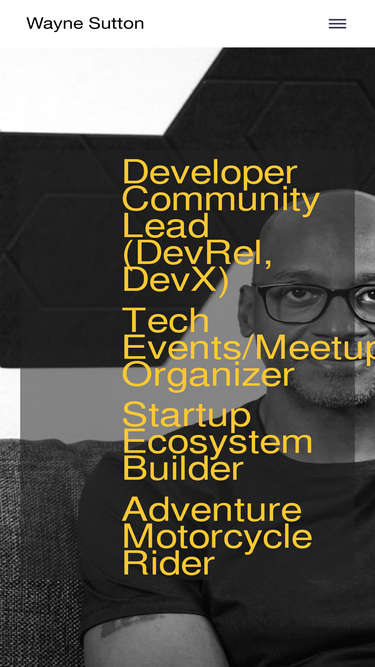 64%Wayne Sutton: Developer Community Builder at Convex, helping developers and startups build faster with AI: tech event and meetup organizer, startup ecosystem builder, adventure motorcycle rider.