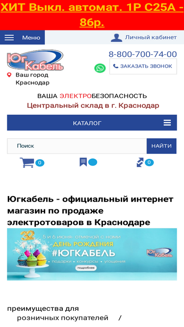 78%Купить электротовары в интернет-магазине ЮгКабель в Краснодаре оптом и в розницу. Продажа электрики с бесплатной доставкой при заказе от 20 000 рублей. Большой выбор товаров по низким ценам.