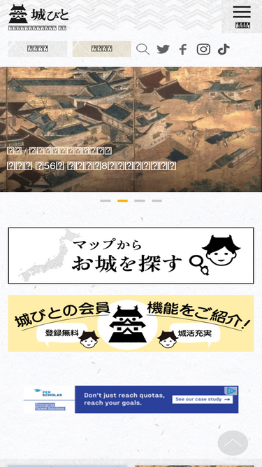 100%城びとは、スペシャリストやお城好きによる、お城の魅力を発信する情報サイトです。訪れたお城の記録や投稿ができるほか、全国にある3,000のお城情報やイベントなど、お城好きに役立つ情報をお届けします。