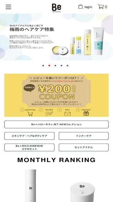 92%「進もう、オーガニックと」をテーマに 一人ひとりが思い描く美しさに、もっと寄り添う国産オーガニック&サステナブルビューティーブランド「Be」<ビー>の公式オンラインショップ。