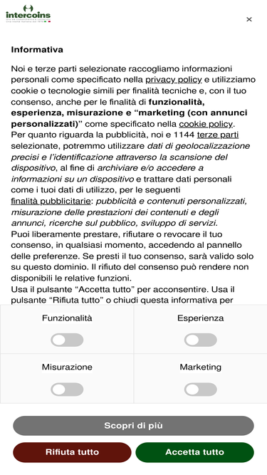 83%Monete da collezione Vendita on line di monete a corso legale da collezione Intercoins S.p.A - Operatore professionale in oro Autorizzazione BANCA D'ITALIA / UIF N° 5000138