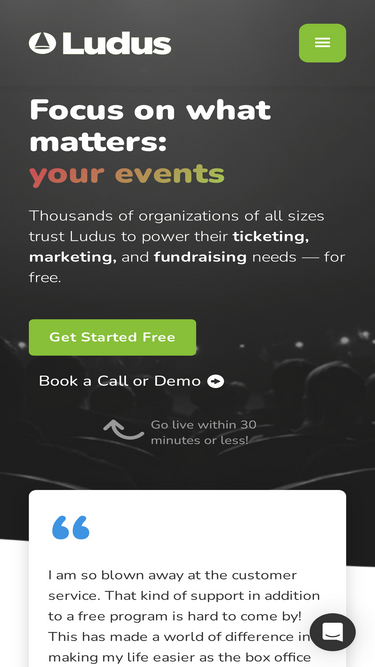 95%Thousands of organizations of all sizes trust Ludus to power their ticketing, marketing, fundraising, and registration needs — for free.