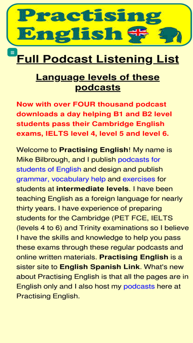 68%english language learning listenings and podcasts, exercises and exam practice for a2, b1, b2, c1 level students, general or cambridge, ielts, trinity english.