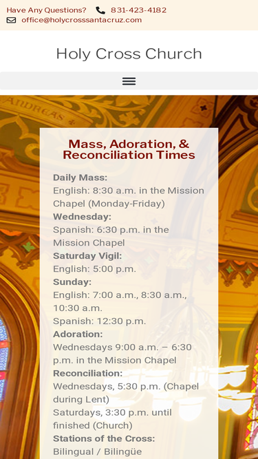 99%Monday 8am Mass - English 6:30pm Mass - Spanish Tuesday 8am Mass - English Wednesday 8am Mass - English ...