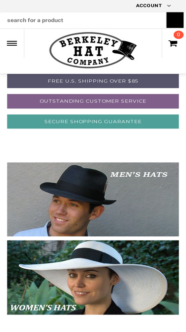100%Berkeley Hat Company, 4 blocks south of UC Berkeley on Telegraph Ave. We sell a variety of hats and caps including Panamas, berets, Kentucky Derby hats and Flat Caps.