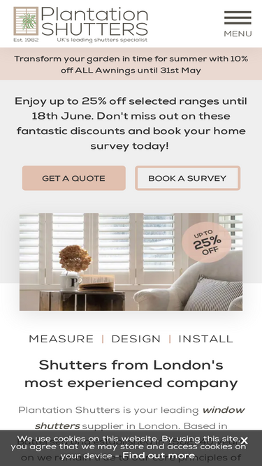 98%Save up to 40% on selected blinds & shutters, 20% off curtains, and 10% off awnings in the Hillarys Spring Sale. Shop now for incredible savings!