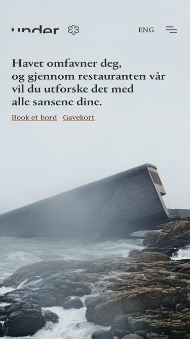 82%As the world’s largest underwater restaurant, Under stands as a symbol of harmony between nature and culinary innovation. We are located in Lindesnes, at the very south tip of Norway. We offer a unique perspective into the ocean. Sustainability incorporated in every process —from ingredient