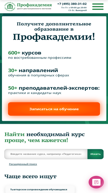 79%Самые популярные курсы от НАДПО для профессионального онлайн-обучения и повышения квалификации: от психологии и педагогики до менеджмента. Рассрочка 0%!